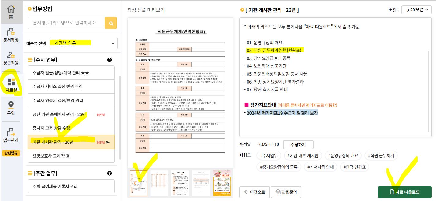 안녕하세요 케어매니저입니다.^^ 자료실 >업무방법 > 기간별 업무에서 근무인력현황표 확인할 수 있습니다.!