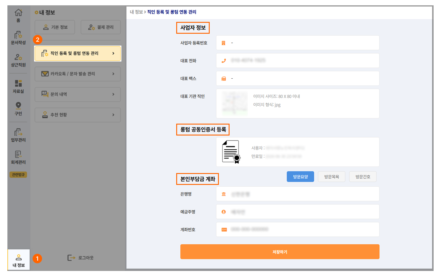 ■ 직인, 입금계좌, 사업자 정보