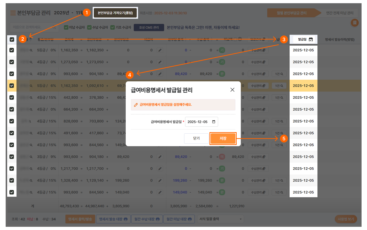1. 본인부담금 명세서 생성 및 발급일 관리