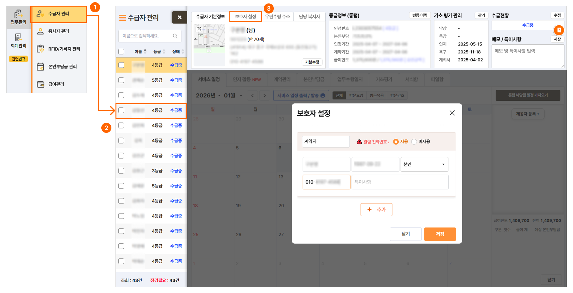 2. 본인부담금 보호자 번호 변경이 필요한 수급자를 선택해주세요!