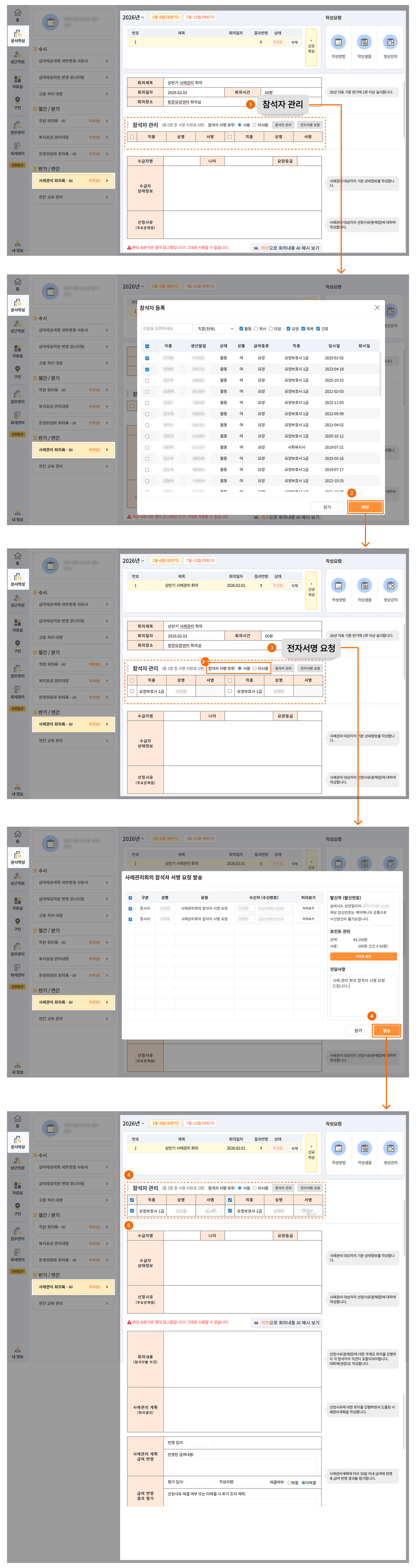 3. 참석자 등록이 완료되면, 등록된 참석자들에게 '전자서명 요청'을 보낼 수 있습니다.