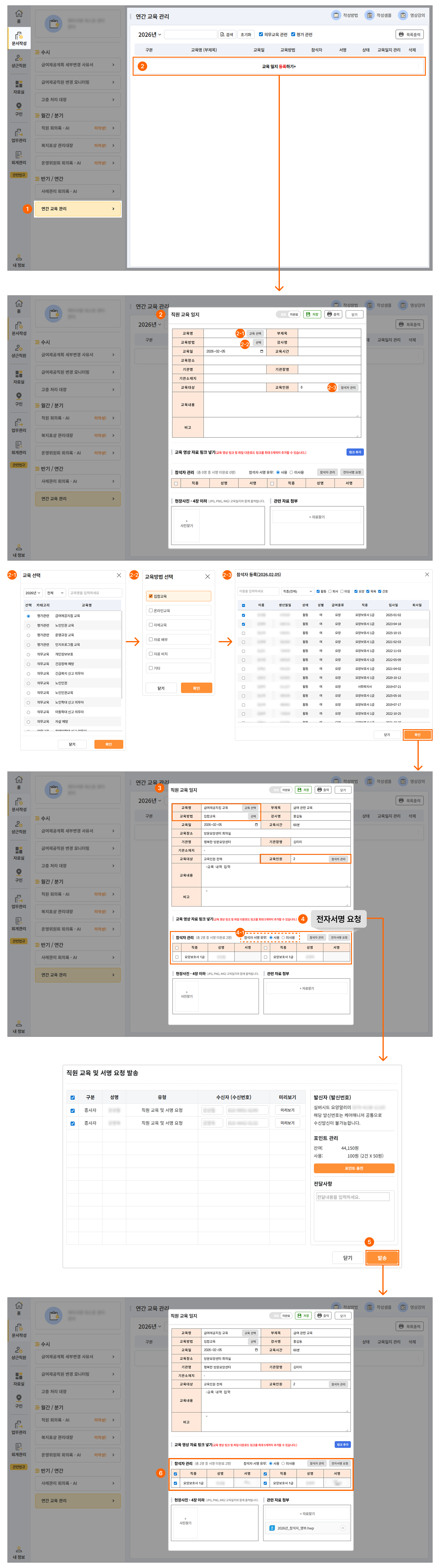 4. 참석자 등록이 완료되면, 등록된 참석자들에게 '전자서명 요청'을 보낼 수 있습니다.